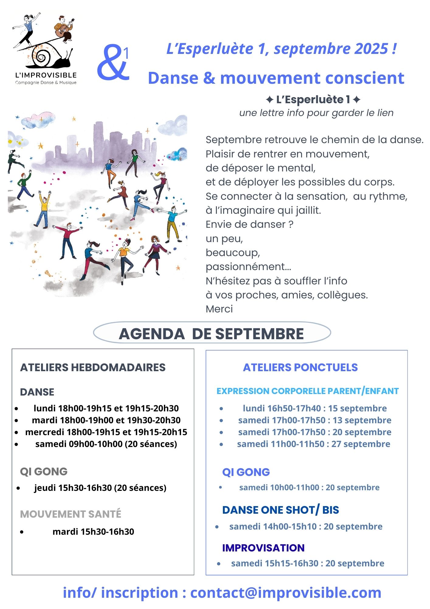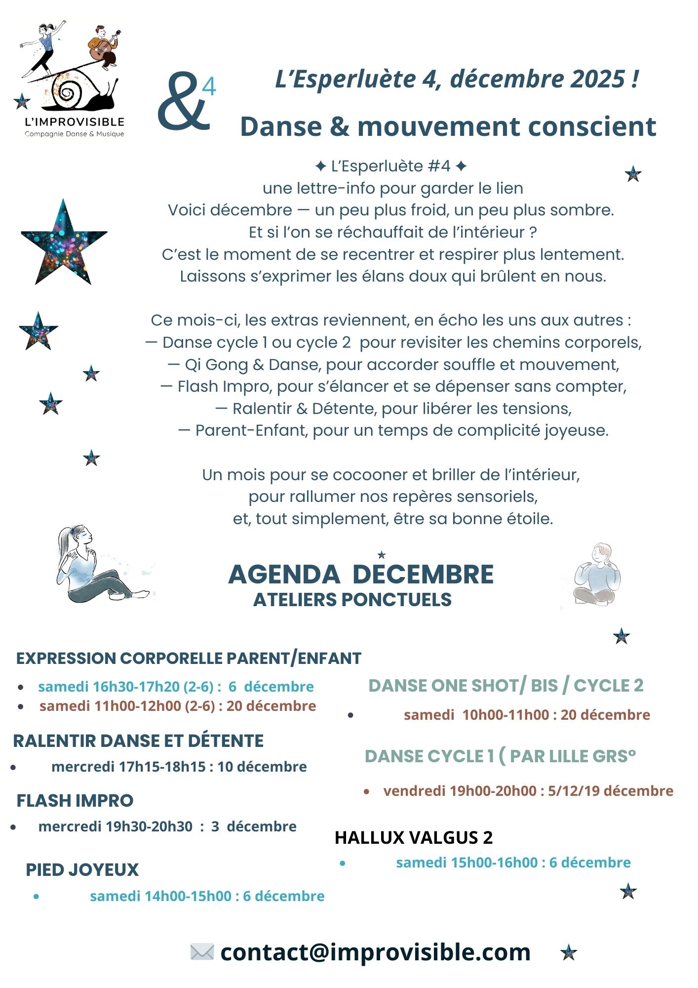 Ateliers de danse ponctuels impro, parents-enfants ....